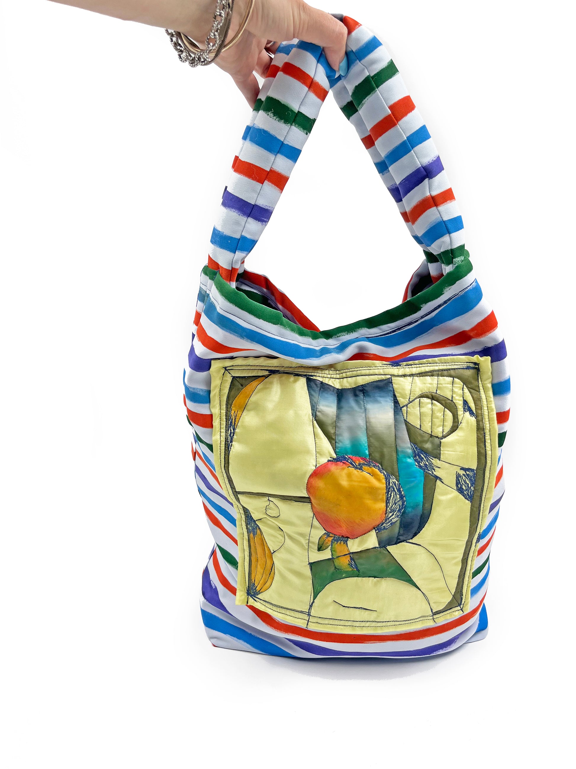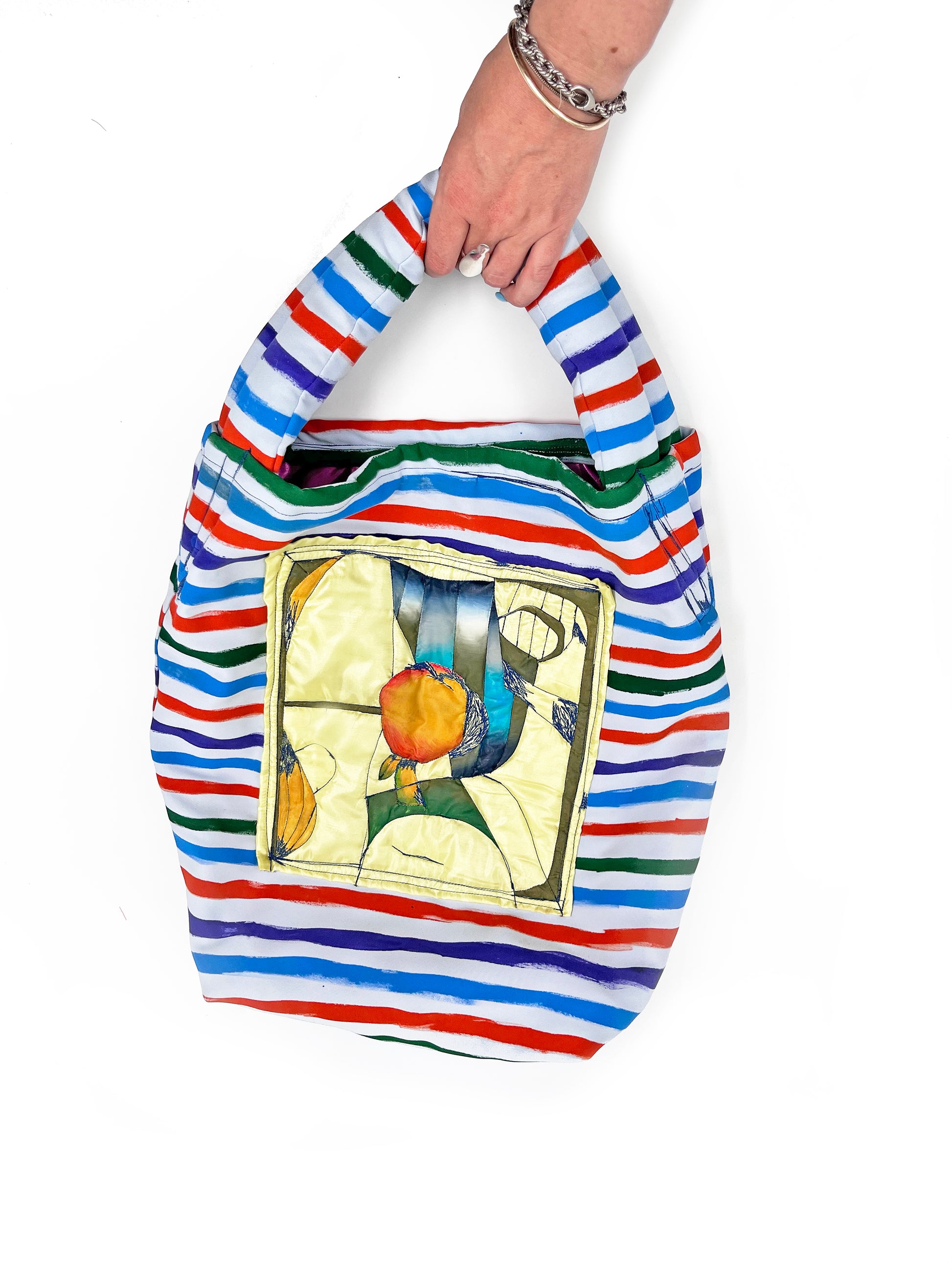 Named after the Vinicunca mountain in Peru, the Rainbow Mountain bag mimics the bold stripes that form from mineral-rich sedimentary rock layers pushed to the surface and exposed through erosion.